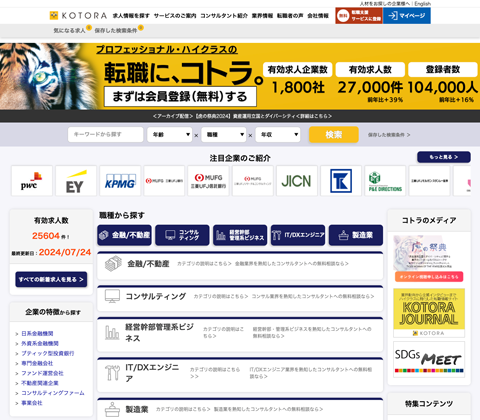 1. 金融や不動産、保険などの業界の求人が充実